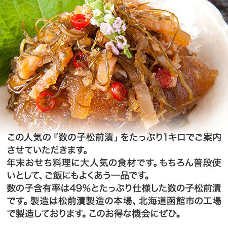 この人気の『数の子松前漬」をたっぷり1キロでご案内させていただきます。