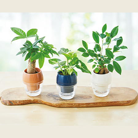 お申込締切:09月19日(月) - お届け内容 ●ガジュマル、シンゴニウム、パキラ、みずてまりん(底面給水鉢)×3、手引書