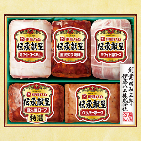 - お届け内容 ●ホワイトロースハム320g、直火炙り焼豚180g、ホワイト肩ロース210g、特選直火焼ローフ180g、ペッパーポーク180g
