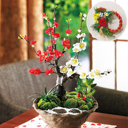 ≪早期割引≫紅白梅盆栽「初春庭園」 12月中旬-下旬お届け