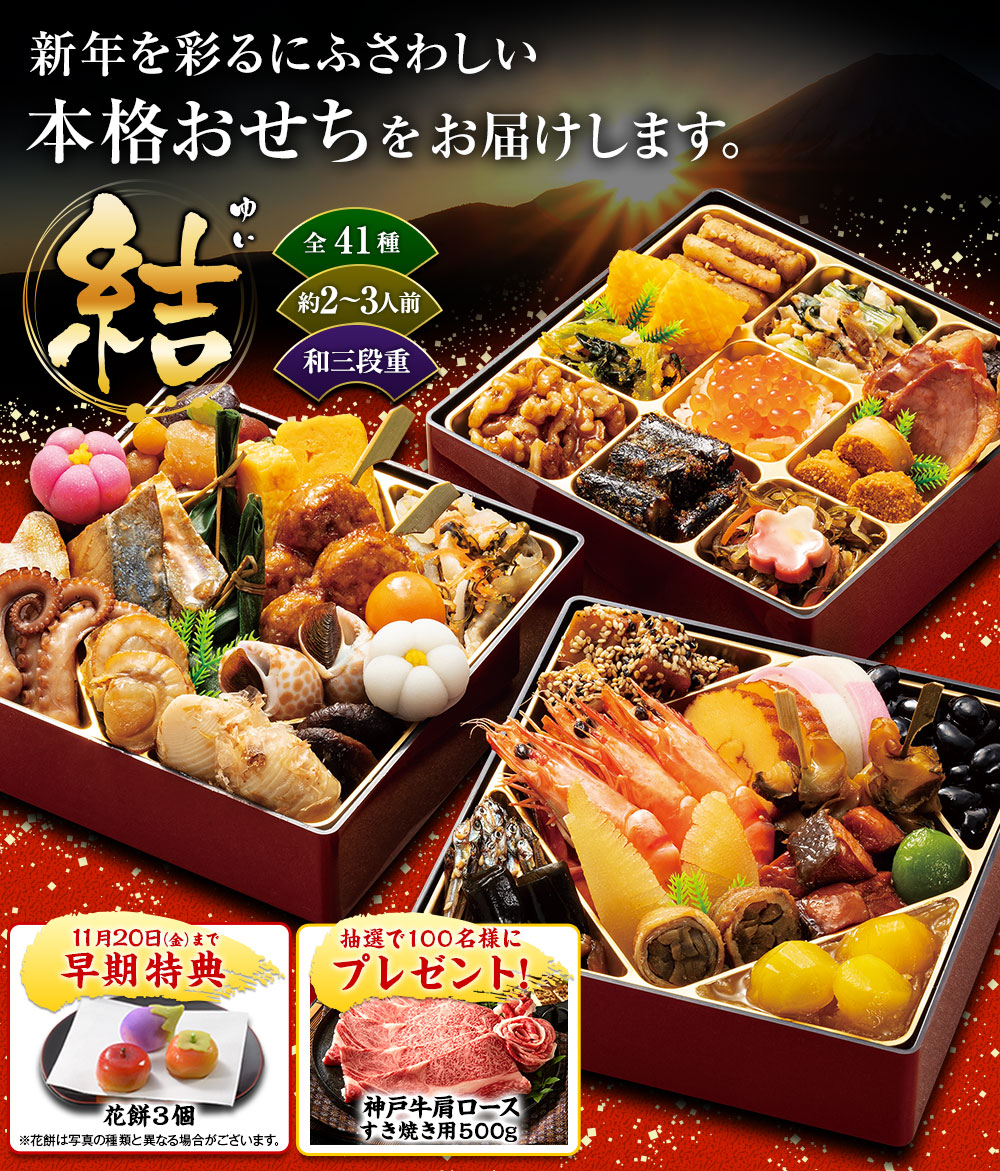 ※「早期特典プレゼント」につきましては、おせちとセットでお届けします。
