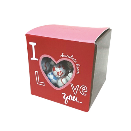 サッカーボールと野球ボールをバレンタインをイメージしたボックスに詰めました。