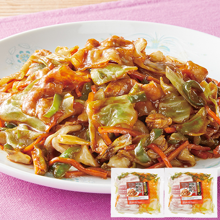 豚バラ肉とキャベツ、にんじん、ピーマンに調味だれをセットした料理キットです。