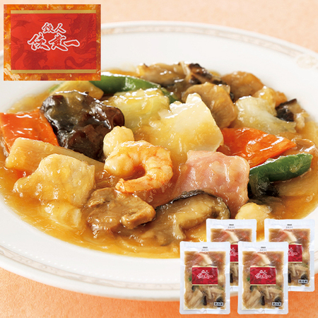 プリプリのいかとえび、白菜、いんげん、たけのこ、にんじんなどが入った具だくさんの八宝菜。隠し味のオイスターソースでコクを加えています。中華丼、あんかけ焼きそばにも。■調理方法:湯せん※この商品は監修者の技術指導を受け協力工場で生産しております。※写真は盛付参考例です。付け合わせ等は商品に含まれません。