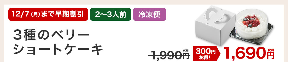 ≪早期割引★300円オフ≫3種ベリーのショートケーキ 12月20日―23日お届け