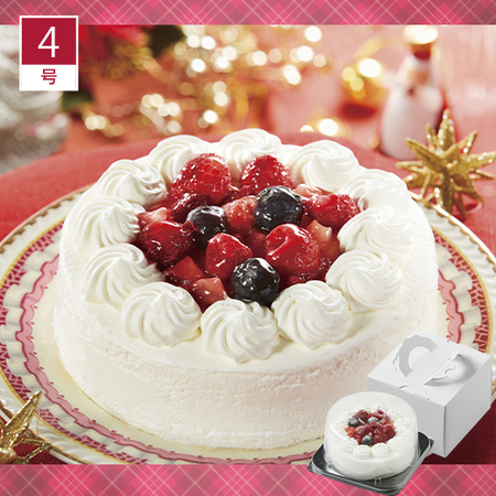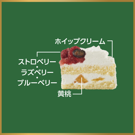 ブルーベリー、ストロベリー、ラズベリーの3種をあしらった定番のショートケーキ。