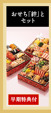 ※「早期特典プレゼント」につきましては、おせちとセットでお届けします。