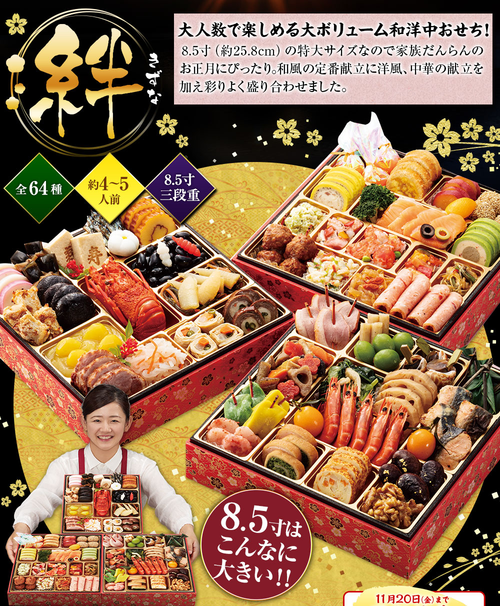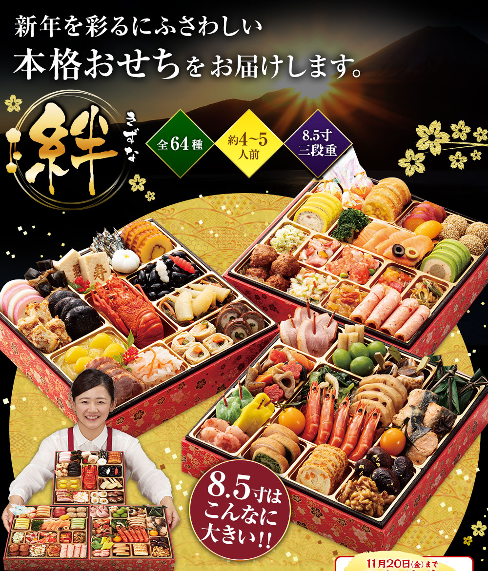 昨年完売御礼!お早めに! 皆様に愛されるおせち。絆。