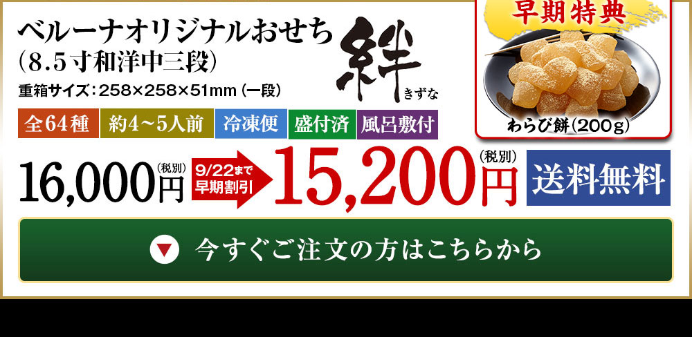 ≪早期割引&特典付き≫ベルーナオリジナルおせち絆 12月29日お届け