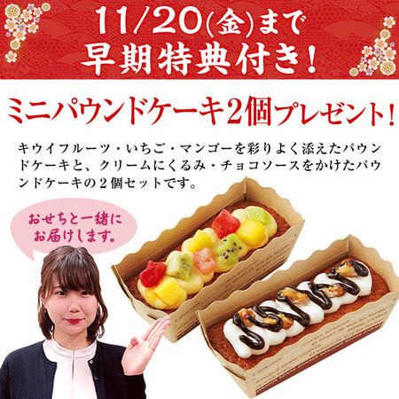 ※「早期特典プレゼント」につきましては、おせちとセットでお届けします。