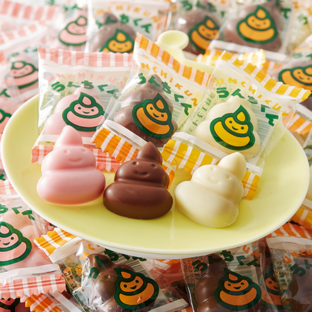 可愛らしいうんちの形のチョコをミルク、ホワイト、ストロベリーの3種類ミックスでお届けします。
