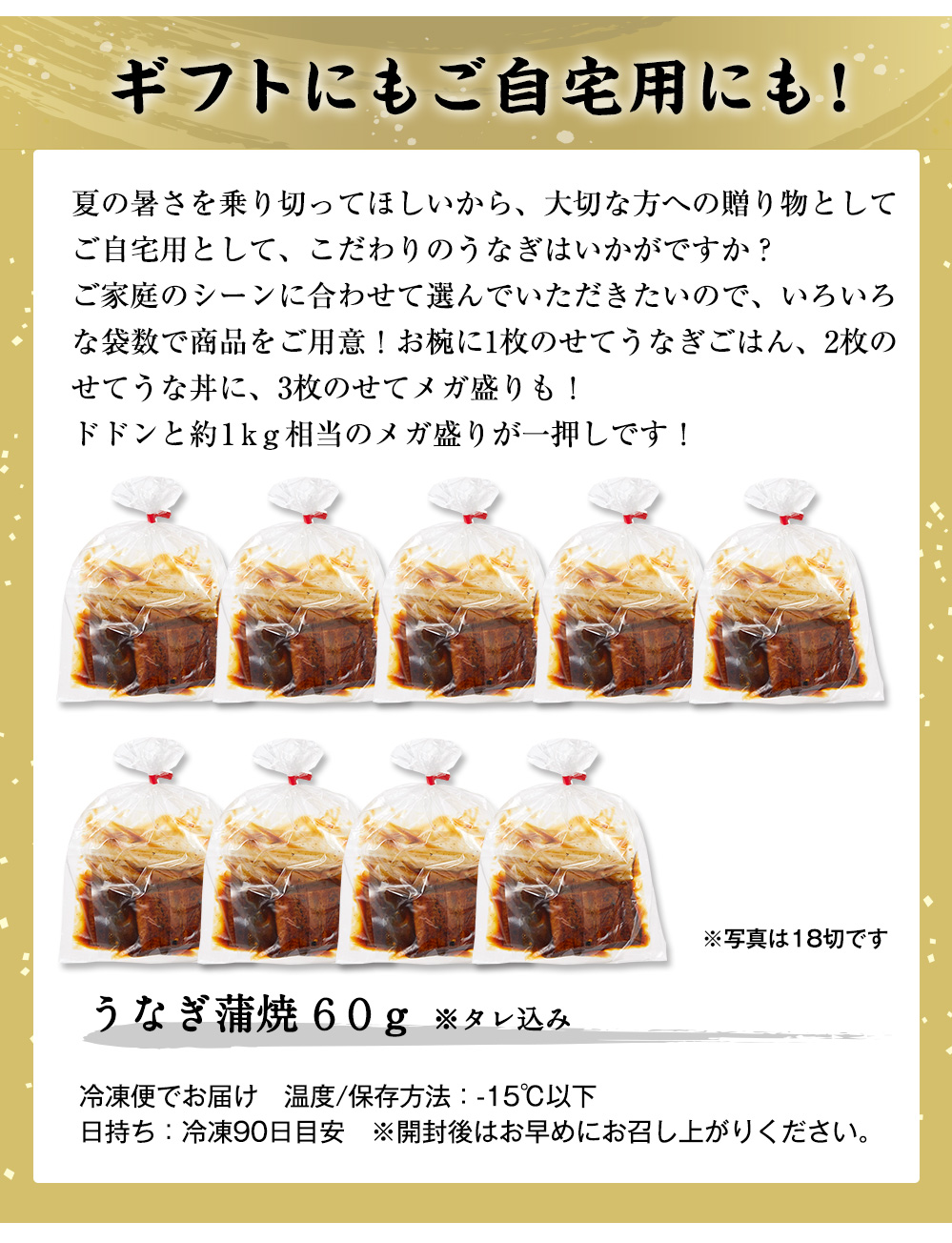 - お届け内容 60g(タレ込)×8切(2切×4袋)