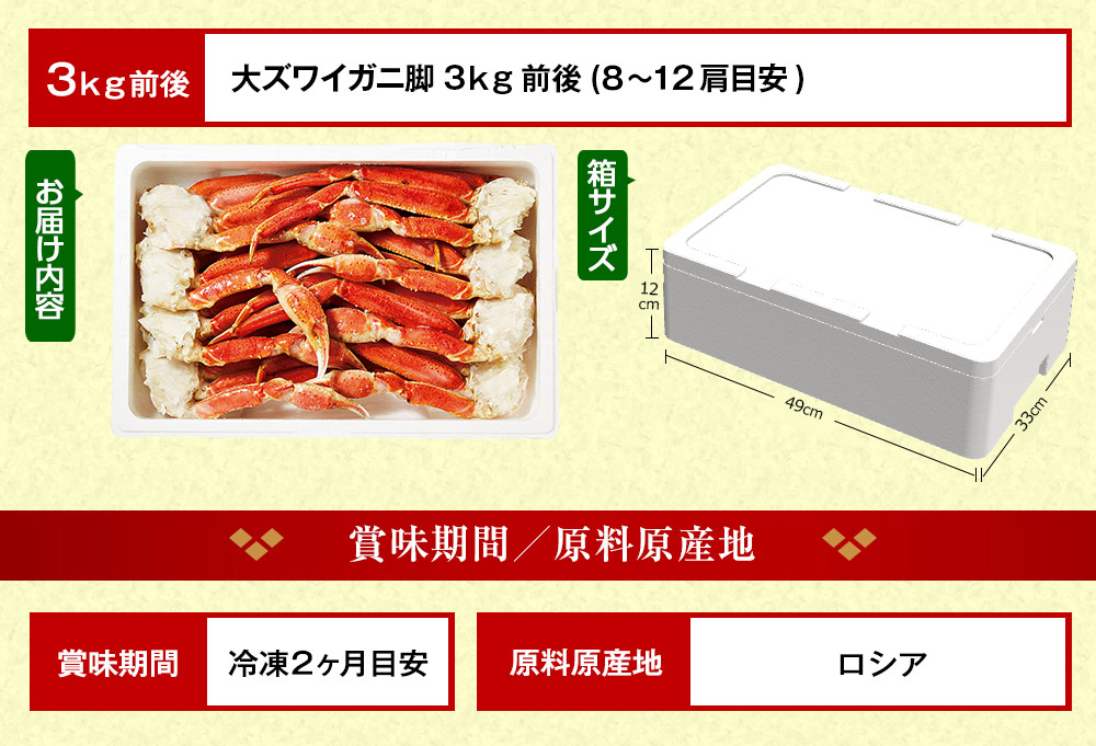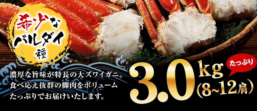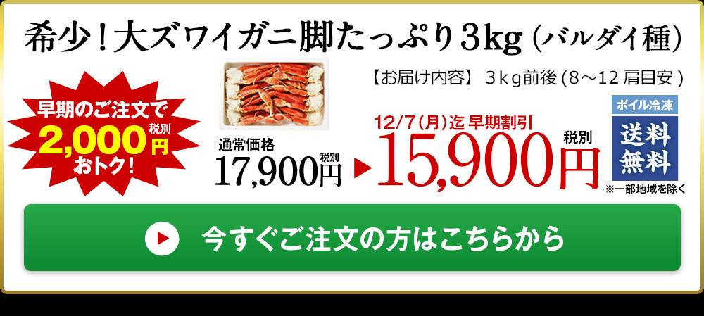 ≪早割★2,000円オフ お歳暮ギフト≫稀少!大ズワイガニ脚たっぷり3kg(バルダイ種)
