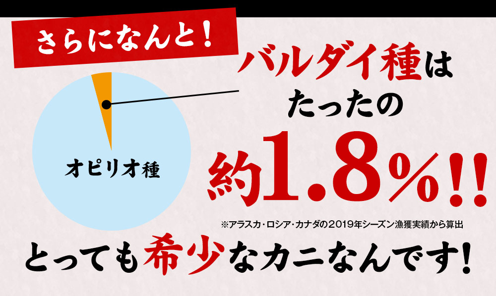 価格設定近年、カニは漁獲量の減少や世界的な需要が増えたことで毎年原料価格が高騰しております。そんな中でも「おいしいカニをたくさんのお客様にお届けしたい」という強い想いで多くの仕入れ先と何度も交渉し、今年も自信をもって「納得の品質と価格」を実現できました。