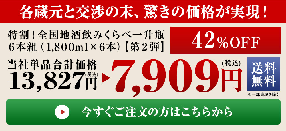 ≪42%OFF!≫特割!全国地酒飲みくらべ一升瓶6本組【第2弾】