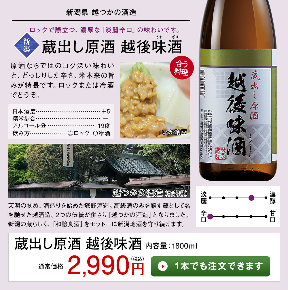 ■〈新潟県〉越つかの酒造【蔵出し原酒 越後味酒】