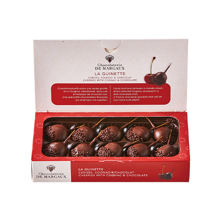 チェリーを丸ごと洋酒に漬け込み、ダークチョコレートで包みました。