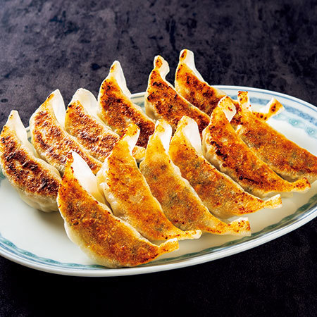 キャベツ、白菜、にら、長ねぎ、豚肉などを使用し、隠し味にオイスターソースとごま油を加え、素材のおいしさを生かしてつくり上げた餃子です。