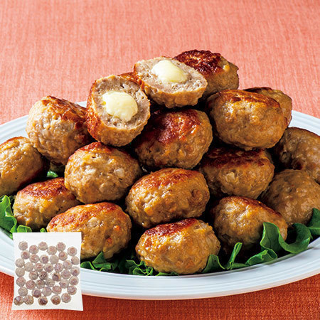牛肉と豚肉のひき肉、玉ねぎでつくった、小さなハンバーグの中にチーズを入れました。
