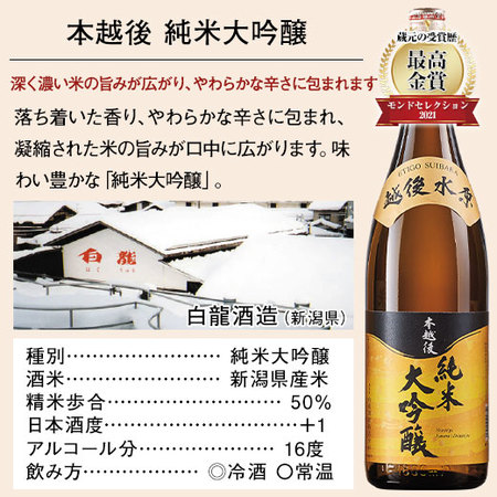 ■〈新潟県〉白龍酒造【本越後 純米大吟醸】