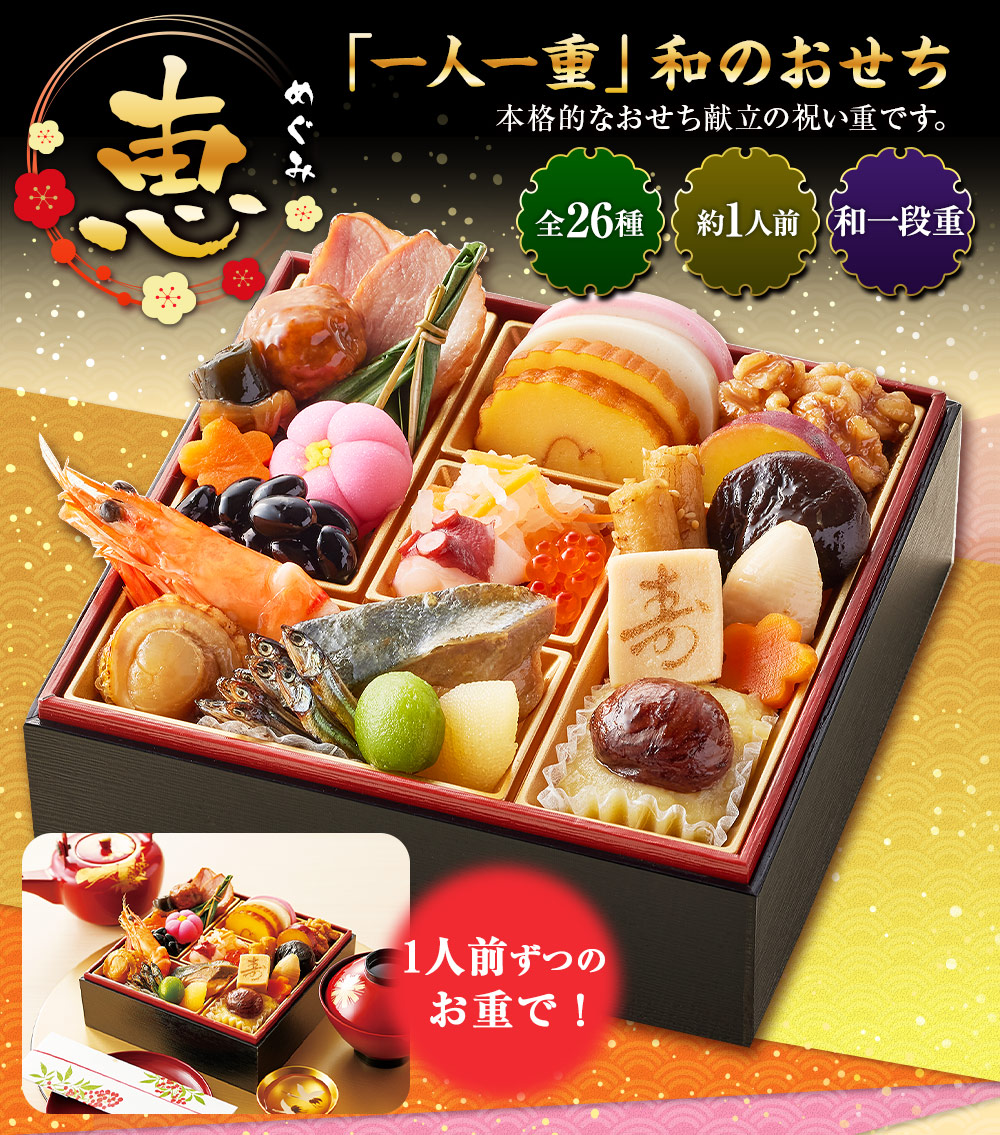 新年を彩るにふさわしい本格おせちをお届けします。 「一人一重」和のおせち