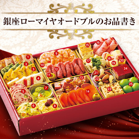 お申込み締切:2021年12月24日(金) - お届け内容 洋風 長角一段重/約4人前/全25種(盛付済みでお届け)