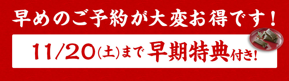 おせちと一緒に楽しめる、早期特典付きおせちを多数ご用意しました。