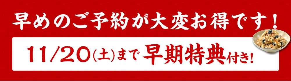 おせちと一緒に楽しめる、早期特典付きおせちを多数ご用意しました。