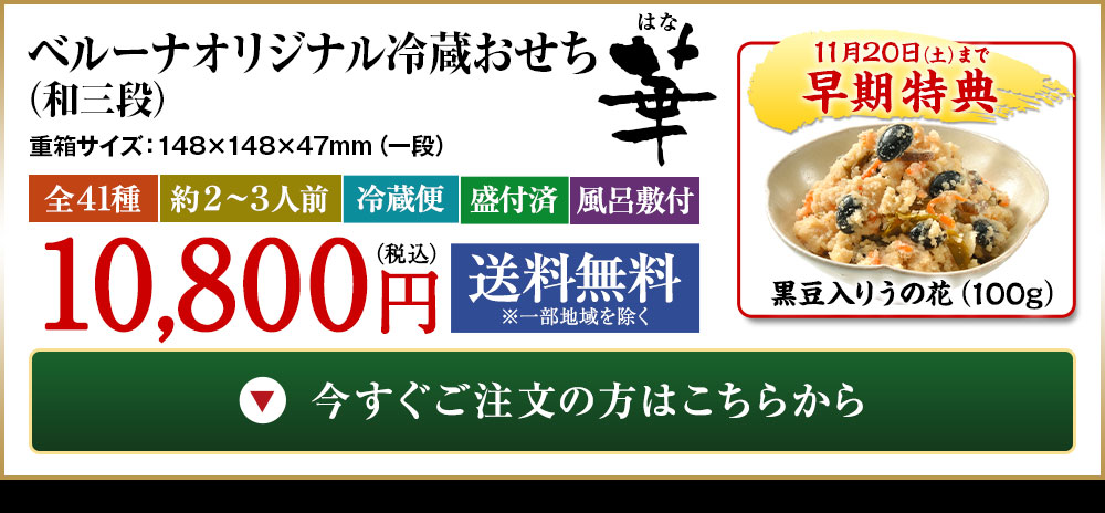 ≪早期特典付き!≫ベルーナオリジナル冷蔵おせち華 12月31日お届け