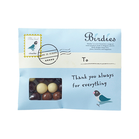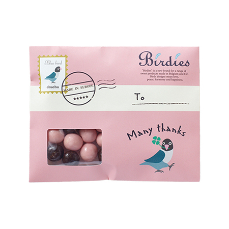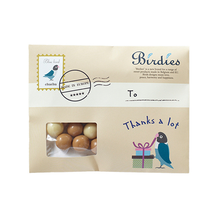 レター型のパッケージの中には、パフチョコ。サクサク食感をお楽しみください。