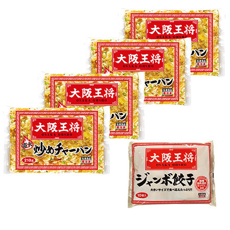 - お届け内容 ジャンボ餃子350g(10個)、炒めチャーハン210g×4袋(2袋×2セット)