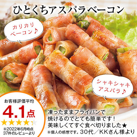 アスパラをベーコンで巻き、食べやすいひと口サイズに仕上げました。