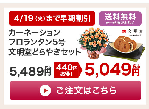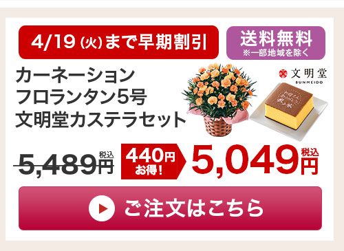≪早割★440円お得!≫カーネーションフロランタンと文明堂カステラセット母の日お届け