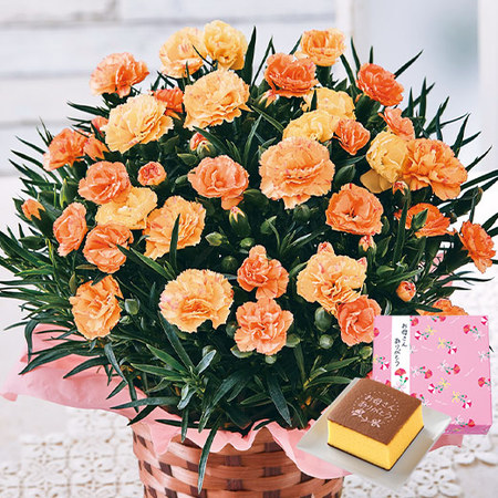 しっとりまろやかでほどよい甘味がたまらないカステラは格別のおいしさ。お母さんにありがとうの気持ちをお花と一緒に贈りませんか?