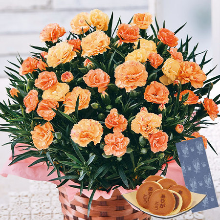 温かみのあるオレンジの色変わりが楽しめるさわやかカーネーション