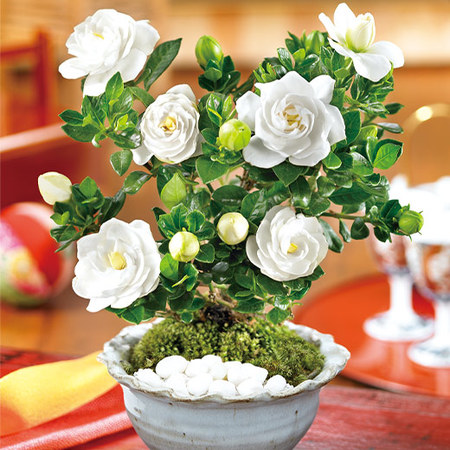 美しい白花・和を演出した苔・こだわりの丹波焼鉢の競演をお楽しみください。