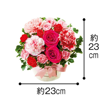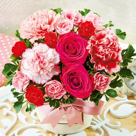 母の日に人気のカーネーションとバラのアレンジメント。