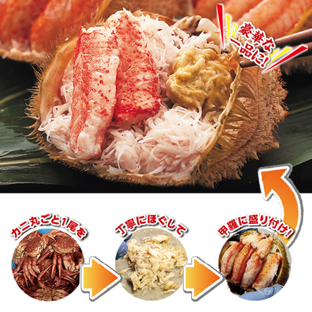 北海道産のゆで毛ガニをぜいたくに召し上がれる一品です。