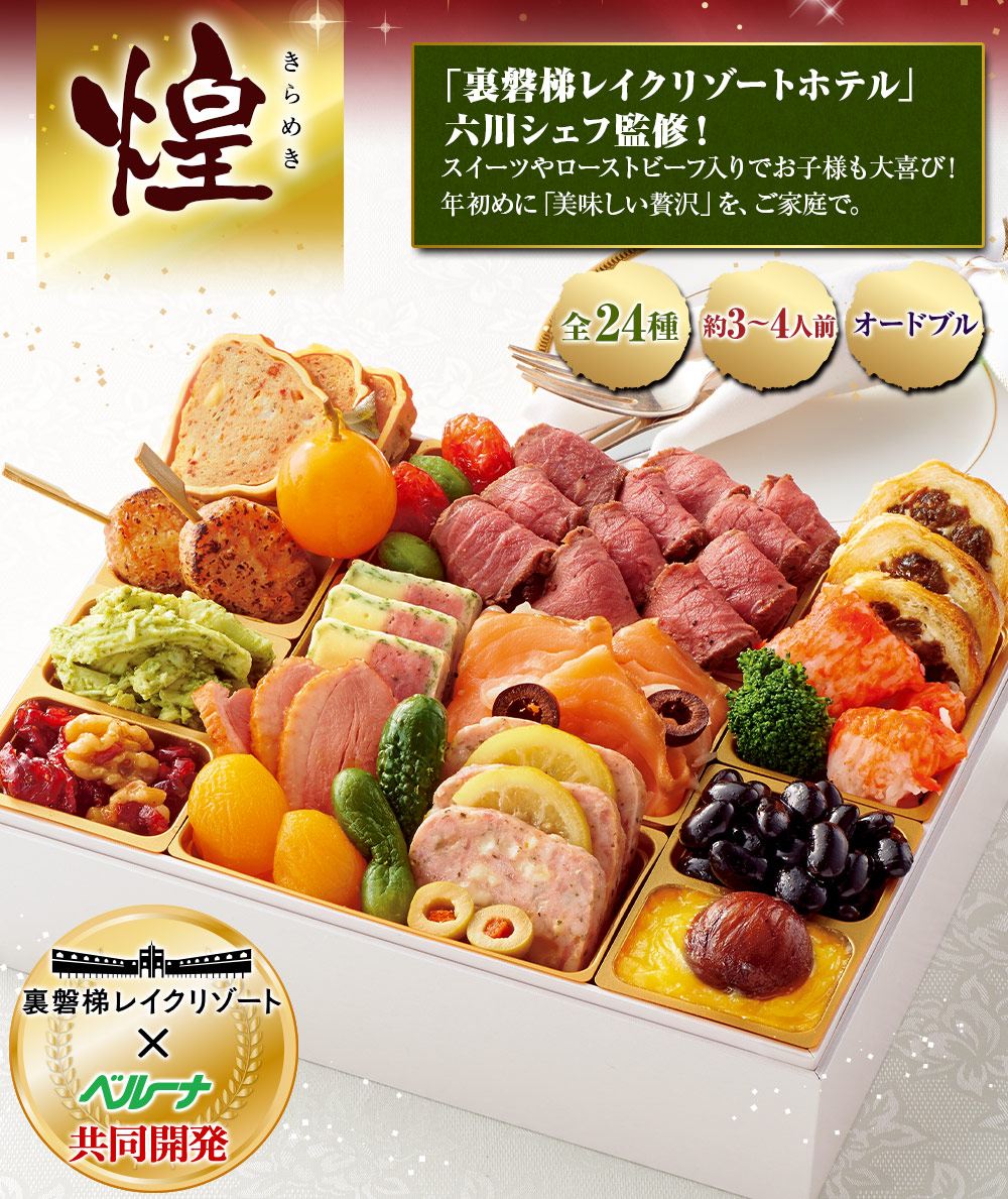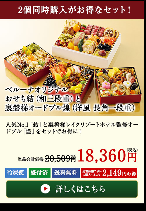 ベルーナオリジナルおせち結(和三段重)と裏磐梯ホテルオードブル煌セット