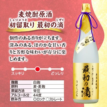 希少価値も味わいも格別焼酎原酒【初垂れ】麦焼酎原酒