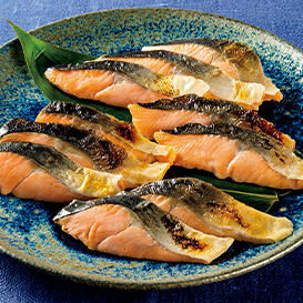 北海道産カラフトマスに塩味を付けて焼き上げました。バラ凍結されており、お好みの分量を解凍するだけで