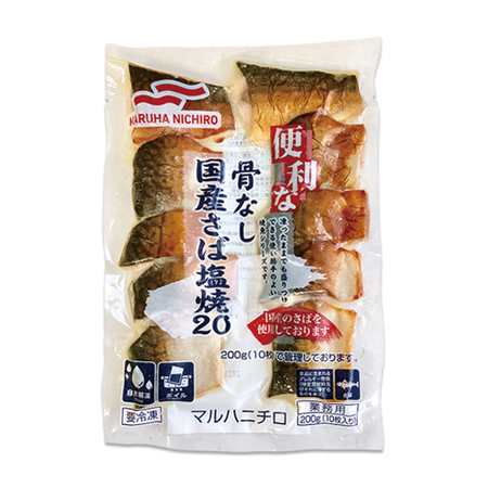 国産さばの骨を取り除き、しっとりと焼き上げました。脂がほどよくのっています。使い勝手のよい小ぶりの