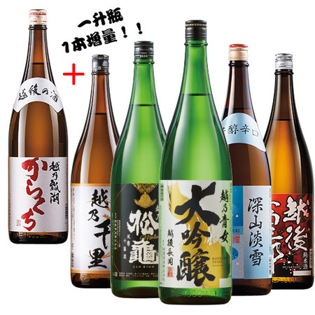 新潟地酒一升瓶5本組+一升瓶もう1本増量!!