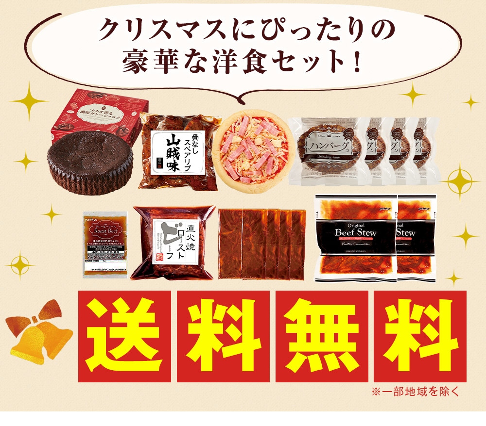 ●直火焼ローストビーフ(グレービーソース付き)160g×1袋、ベーコンたっぷり4種のチーズピザ259g×1枚、骨なしスペアリブ(山賊味)400g×1袋、ハンバーグ130g×4個、きのこデミグラスソース80g×4袋、赤ワイン&地ビール仕込みのビーフシチュー170g×2袋