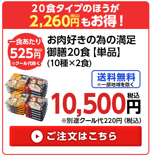 バラエティー豊かなお肉メニューでお腹も気持ちも満足!◎ポイント1.メインがお肉のメニュー味付けは和・洋・中様々なメニューですので、毎日食べても飽きない!◎ポイント2.副菜には野菜もたっぷりお肉メニューと言いつつも、副菜には野菜をたっぷり使っていますので栄養バランスは◎!■調理方法/電子レンジ※写真は商品のお届け例です。 ※写真は盛り付け参考例です。ごはん等はつきません。※原料事情によりお届け内容・加工地が変更になる場合がございます。ご了承ください。※商品内容が写真と異なる場合がございます。