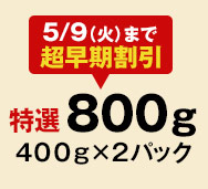 お申込締切:05月09日(火) - お届け内容 ●800g(特選)(400g×2パック)