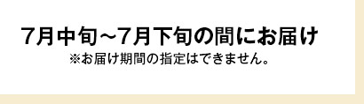 ※当社規定または天候・道路事情など、やむを得ない事情により、お届け時期が予定より前後する場合がございます。