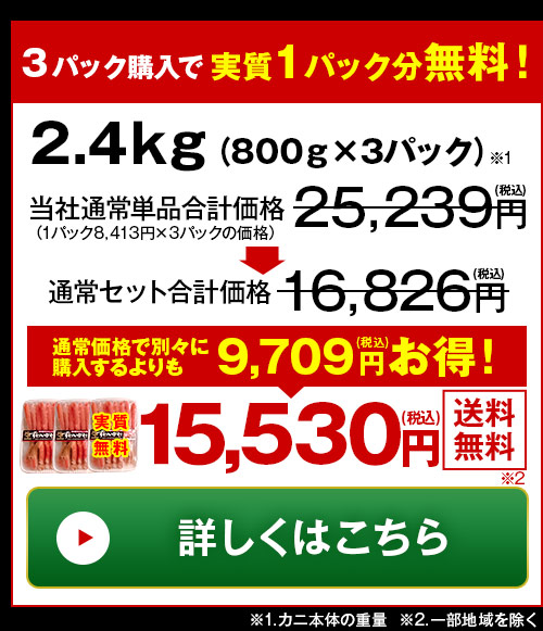 ≪超早割★1,296円引き!お歳暮ギフト≫生ずわいがに半むき身800g×3