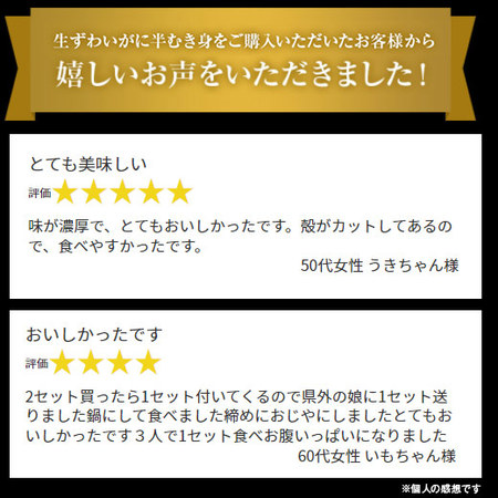 味が濃厚で、とてもおいしかったです。殻がカットしてあるので、食べやすかったです。50代女性 うきちゃん様 ※個人の感想です。