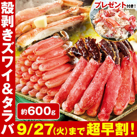 ≪超早割★1,620円引き!お歳暮ギフト≫殻剥きタラバ&ズワイ脚セット計600g